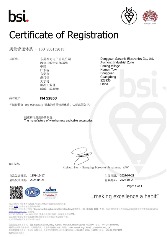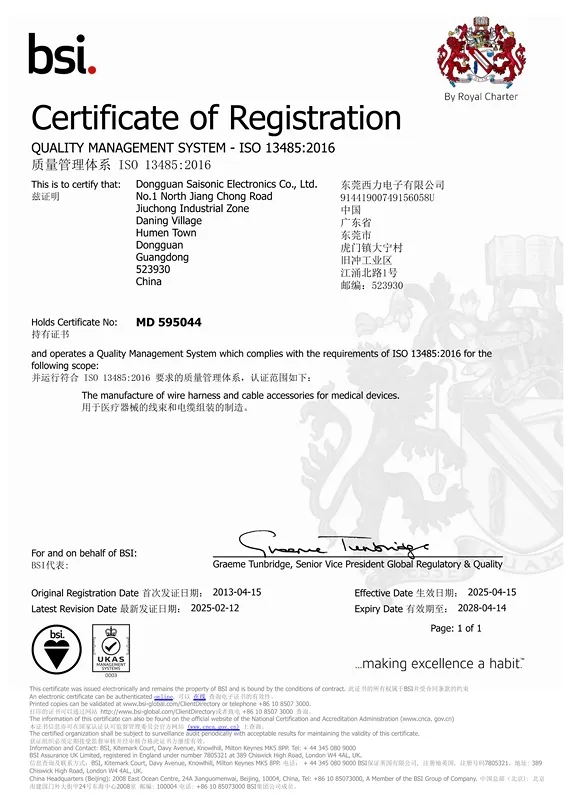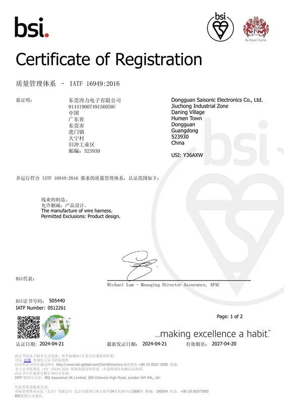 Более чем за 33 года стабильного развития компания SAISONIC стала надежным производителем и партнером в области жгутов проводов и кабельных сборок. Производство расположено в городе Дунгуань (Китай) и занимает участок площадью 8 016 м², при этом общая площадь производственных и офисных помещений превышает 30 000 м².