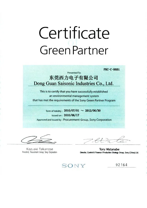 SAISONIC сертифицирована по стандартам ISO 9001 и ISO 14001, что подтверждает высокий уровень управления качеством и экологической безопасностью. Команда контроля качества (IQC, QC, OQC и другие специалисты) сопровождает весь производственный процесс от закупки сырья и входного контроля до хранения и отгрузки готовой продукции.